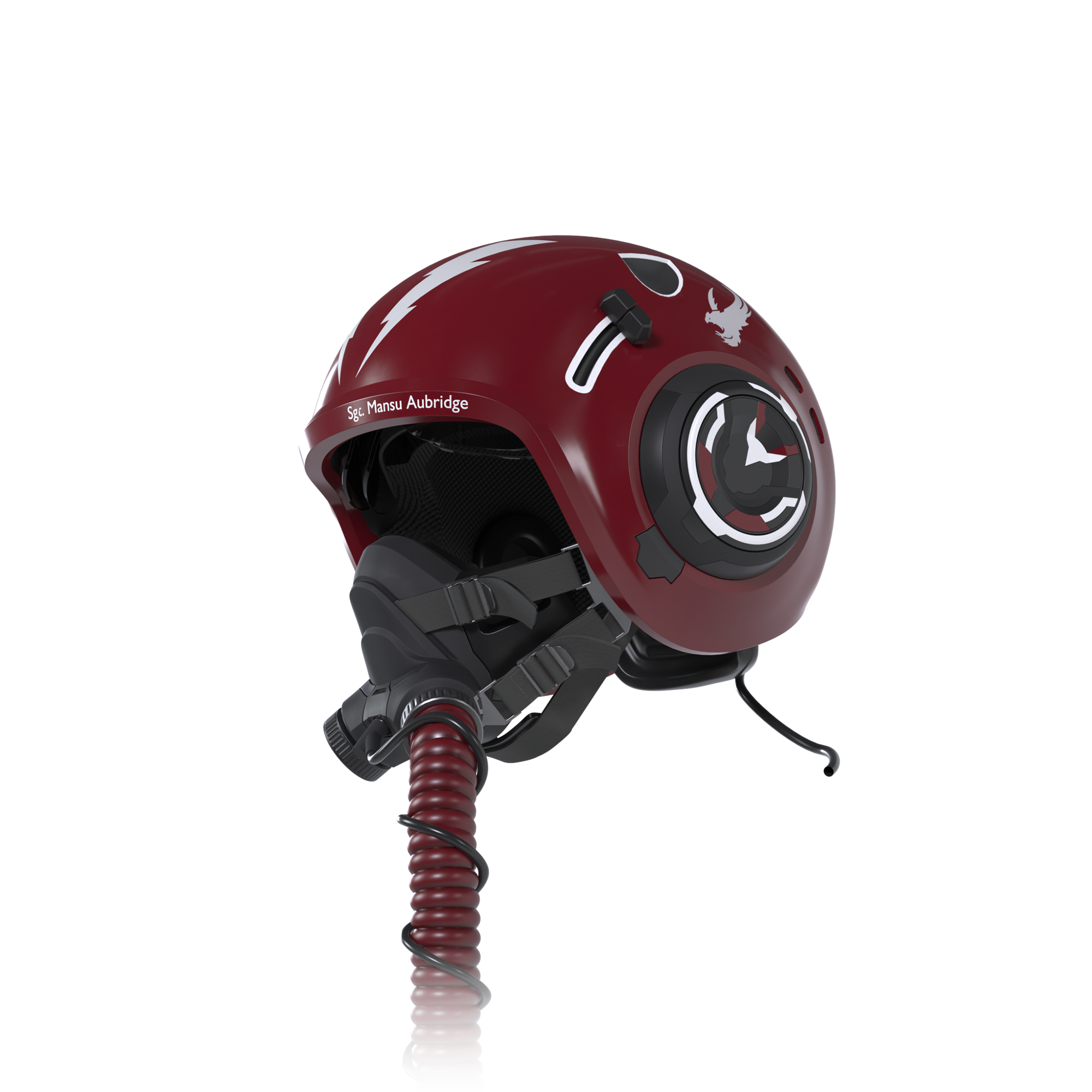 When working with characters that have helmets, the helmet has to become part of them. It takes part in their expression and identity. Popular references include the Power Rangers, Mandalorian or Top Gun. I knew that when I started to work on a fighter pilot, their helmet would be critical to the overall design. It's the part that went through the most iterations and tweaks over the years.