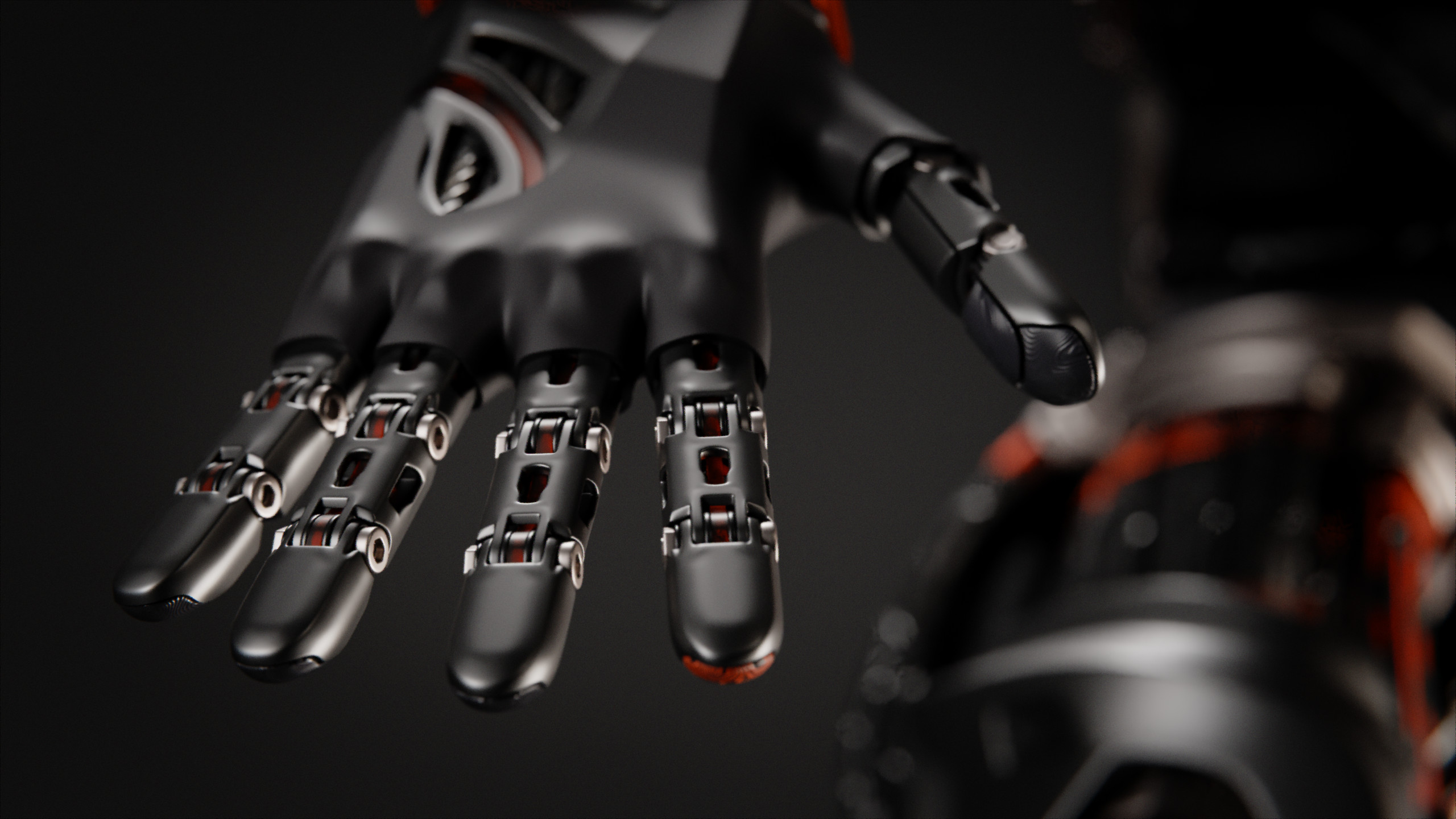 One of these being the robotic arm, along with helmet it would be a visual highlight that the viewer might be drawn to, and so it was important to establish its design. I went through multiple iterations, going back to concepting and taking in feedback. I landed on a bionic approach, where artificial muscles and tendons weave through skeletal metal structures. This design really resonated with me and established the look of the cybernetic parts that were still unmodelled at that point.