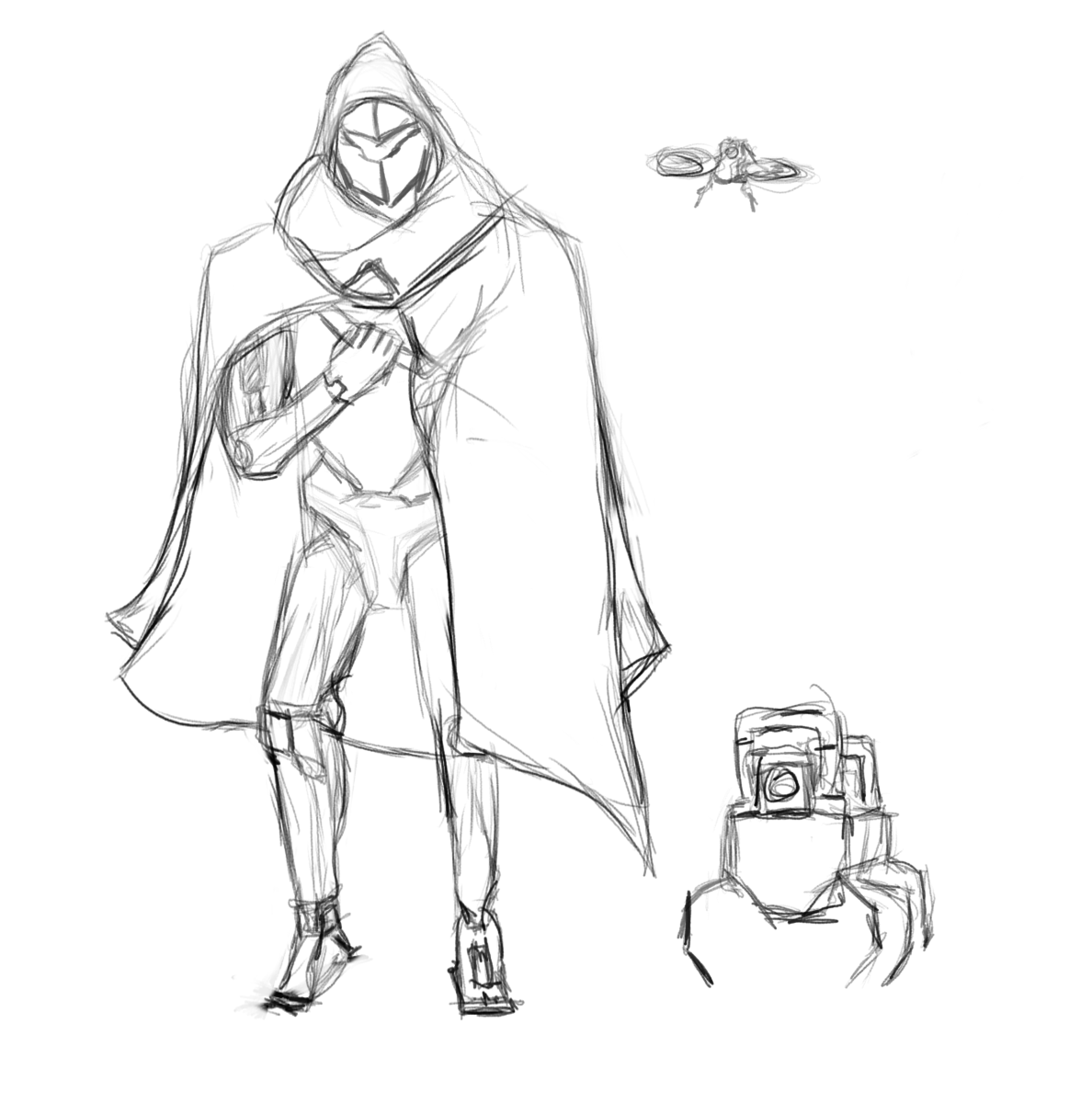At the start of the year I thought about doing a robot as my design, since I have not built a mechanical character before. I wanted to combine mechanical elements with organic elements like cloth. I was considering a wide range of shapes and ideas, even thinking about not designing a character at all and developing a vehicle design. With feedback from my professor and the class, I followed through with a two-legged robot concept at first.